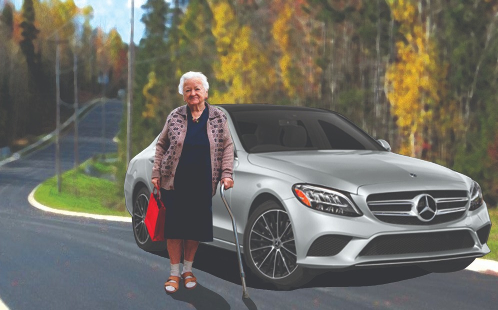વૃદ્ધા પાસે મર્સિડીઝ કાર હતી પરંતુ તે એટલી વૃદ્ધ હતી કે તેની કારનું ટાયર બદલવા સક્ષમ નહોતી. તે અનેક કારચાલકોને મદદ માટે હાથ ઊંચો કરતી હતી પરંતુ કોઈ તેની કાર ઊભી રાખી તેને મદદ કરતું નહોતું.